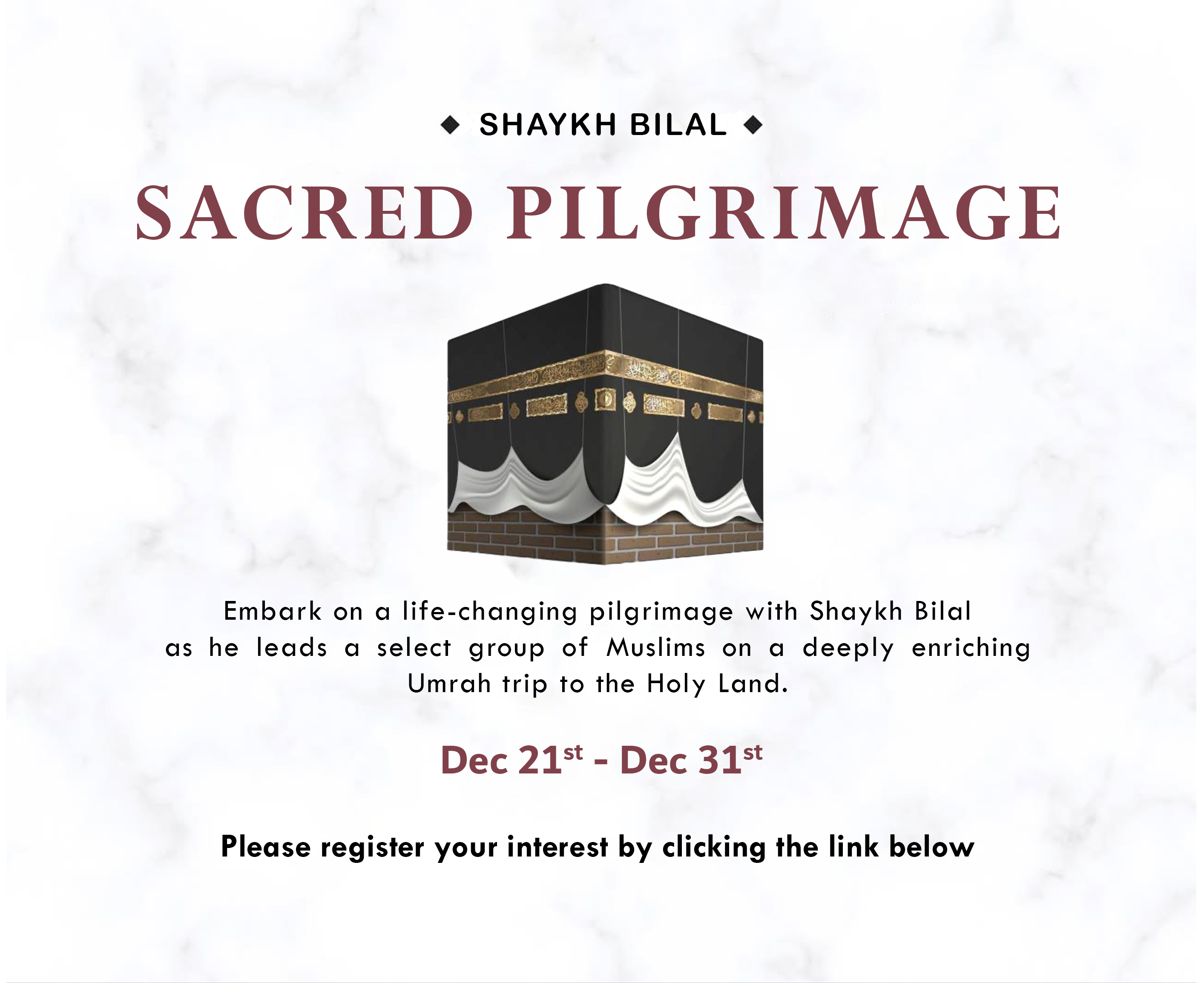 Embark on a life changing pilgrimage with Imam Bilal as he leads a select group on a deeply enriching Umrah trip. This is an incredible opportunity to experience the sacred rituals of Umrah, reflect on your faith, and connect with fellow believers, all under the guidance of an experienced and compassionate scholar.